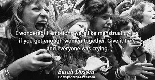 I wondered if emotions were like menstrual cycles, if you get enough women together. Give it time, and everyone was crying.